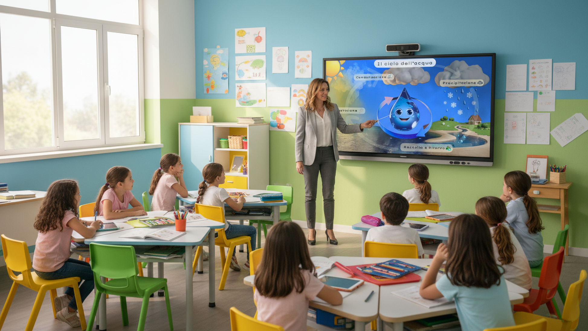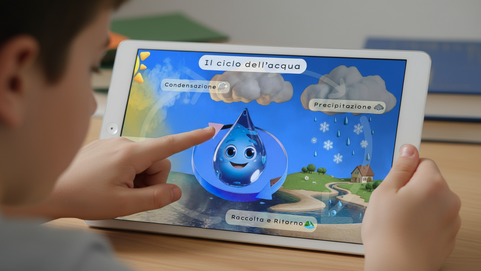 Mappa concettuale chiara e semplice per aiutare i bambini a capire il ciclo dell’acqua in modo immediato.
